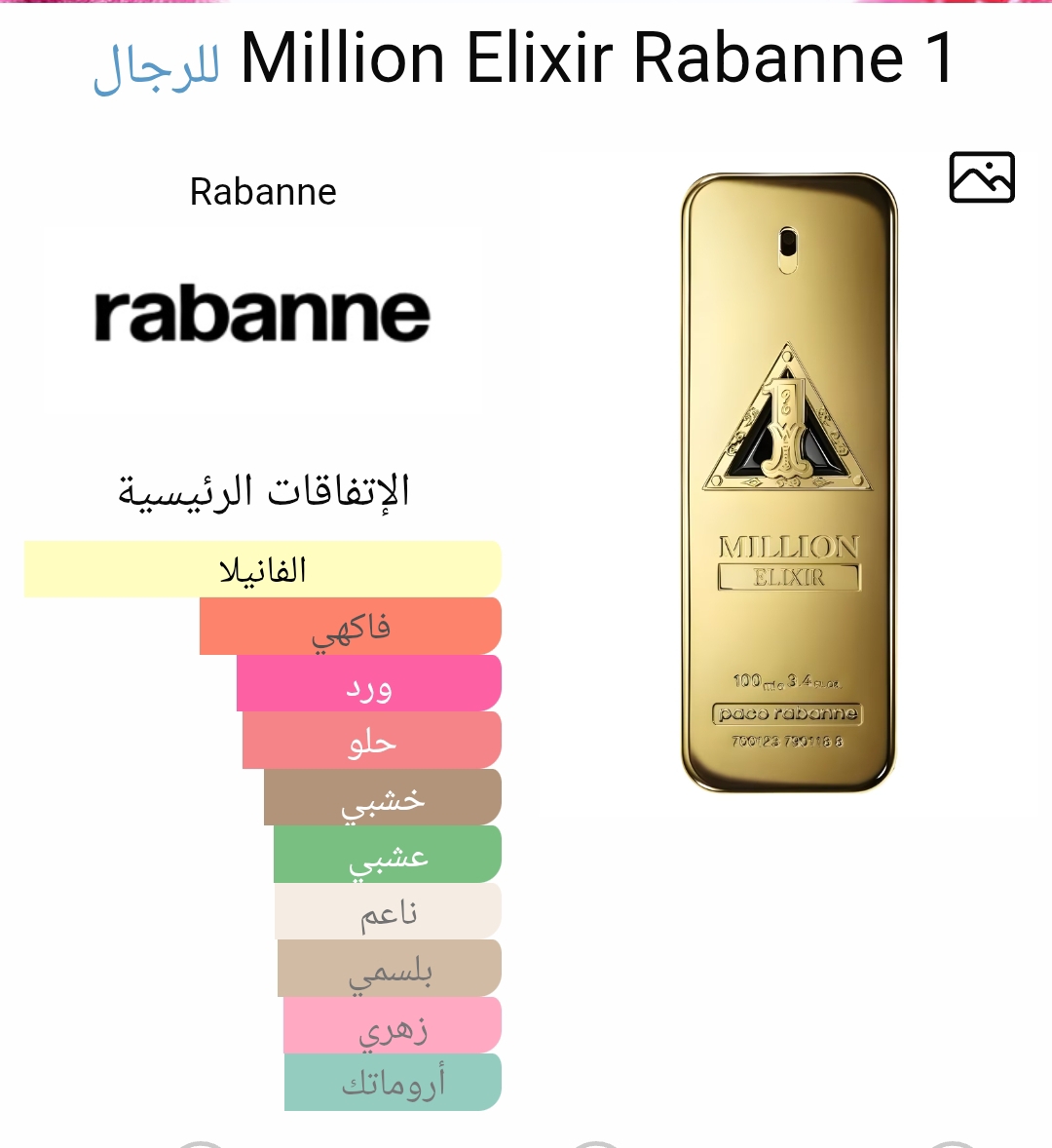 عطر ون مليون اليكسير انتنس (1 Million Elixir Intense) من باكو رابان (Paco Rabanne) هو عطر فاخر للرجال بتركيبة مميزة تجمع بين الأناقة والجرأة. أُصدر العطر في عام 2022 ويعكس الرقي والجاذبية مع كل نفحة من مكوناته المركزة.