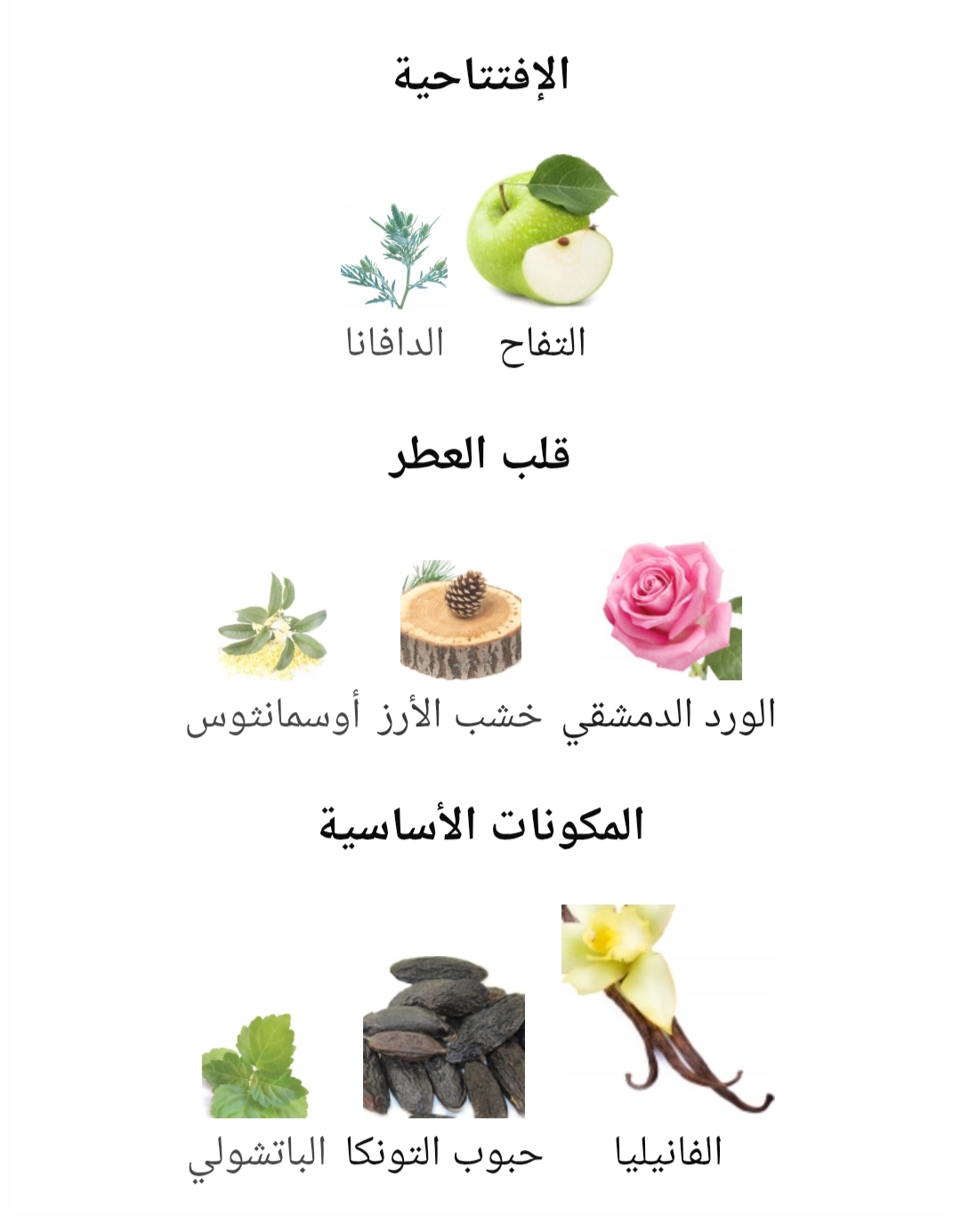 قاعدة العطر تتكون من الفانيليا, حبوب التونكا و الباتشولي