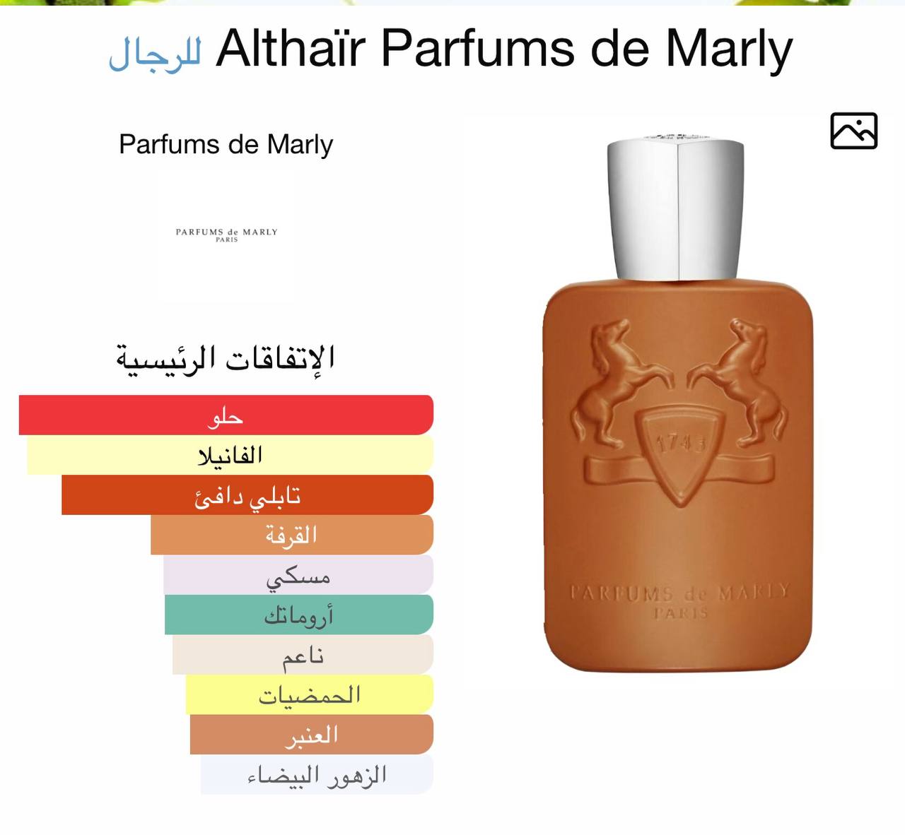 إفتتاحية العطر القرفة, الهيل, زهر البرتقال و البرغموت;