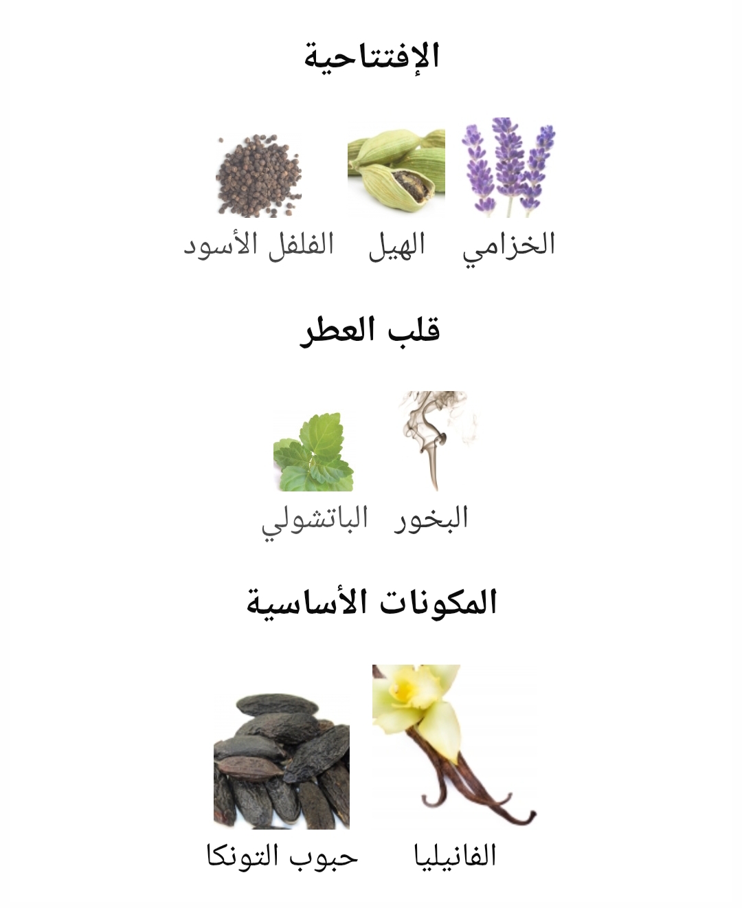 إفتتاحية العطر الخزامي, الهيل و الفلفل الأسود;